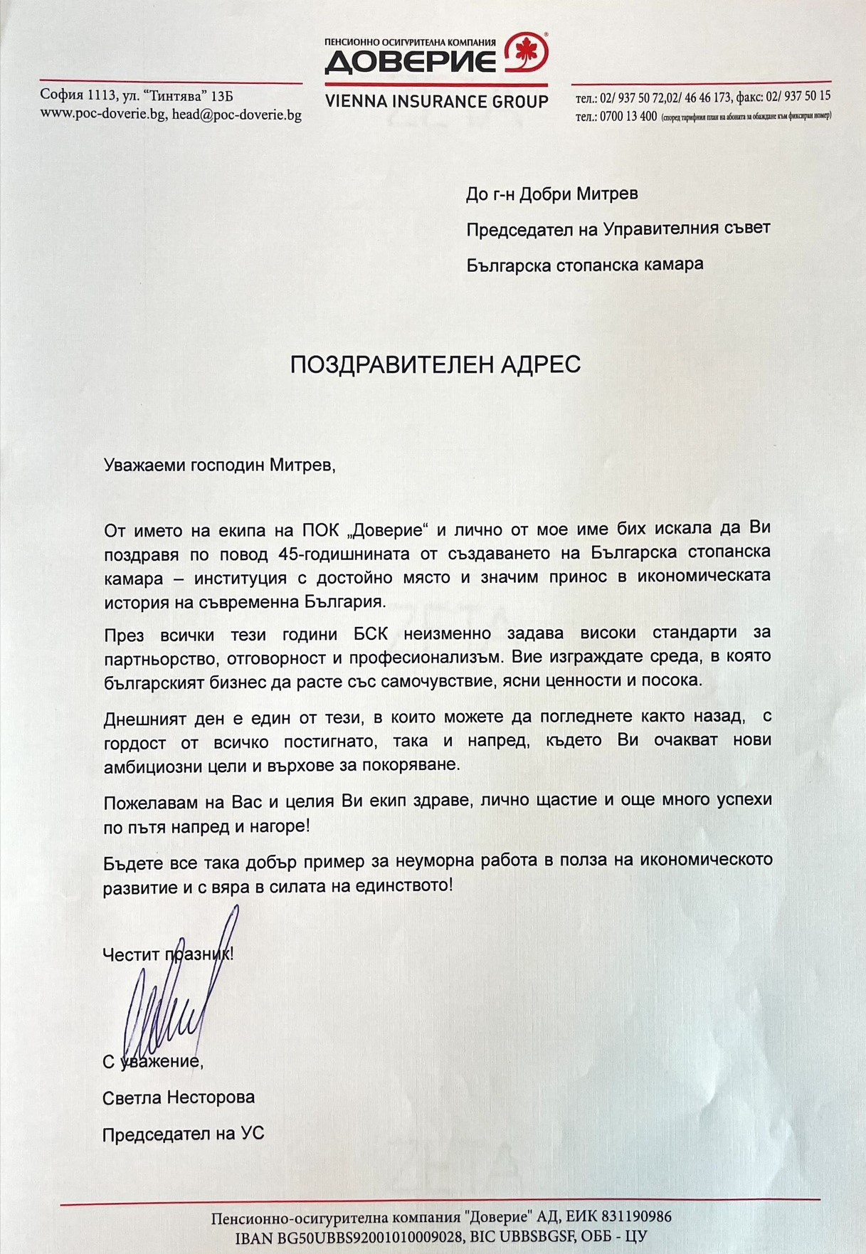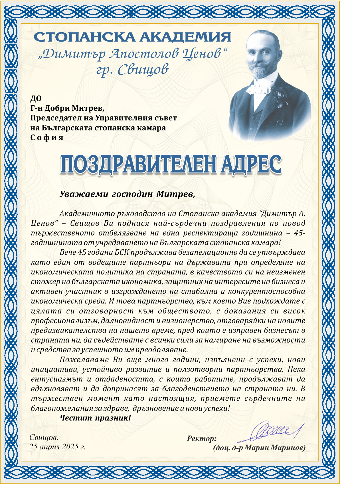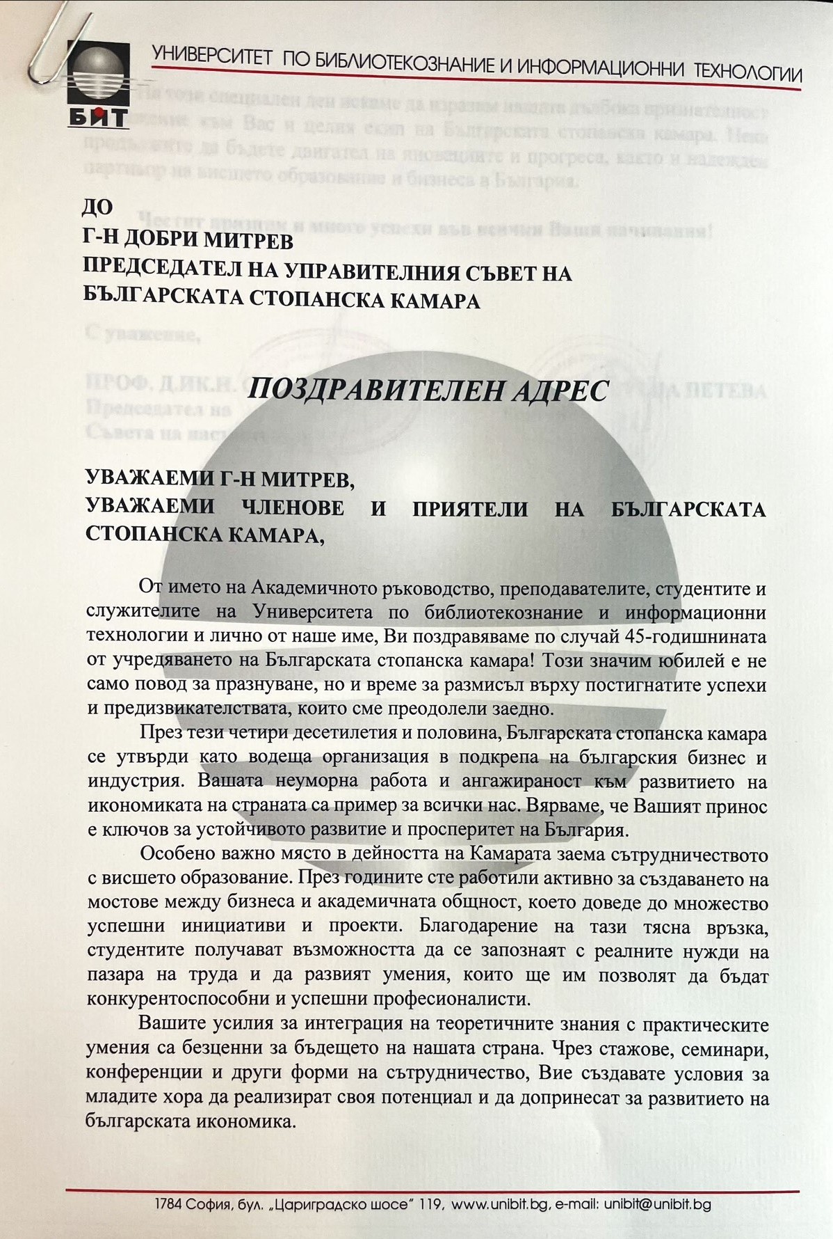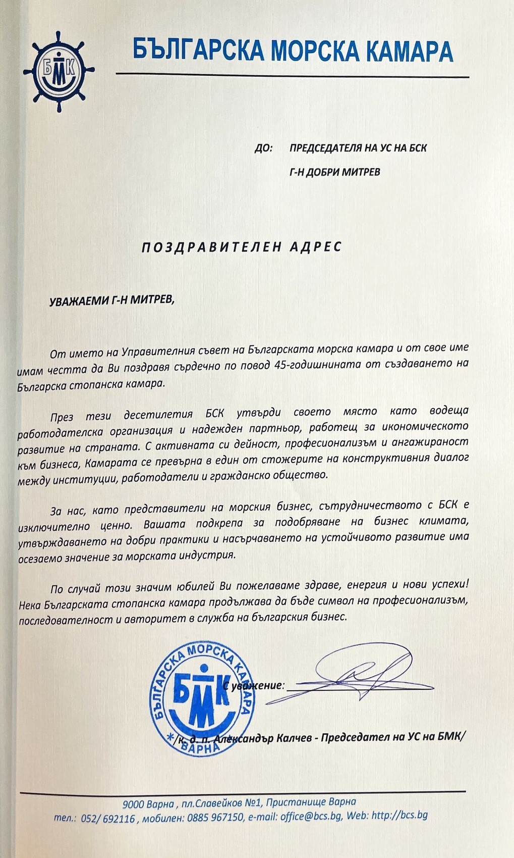 Поздравителни адреси:
