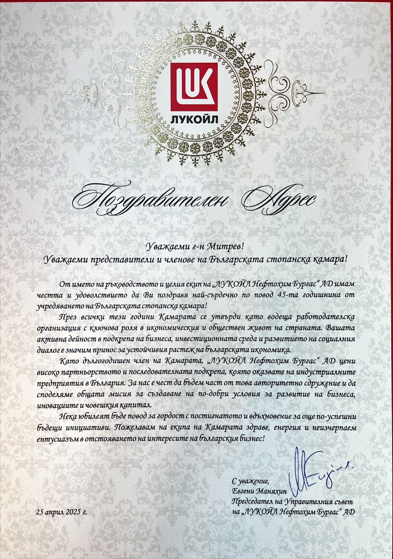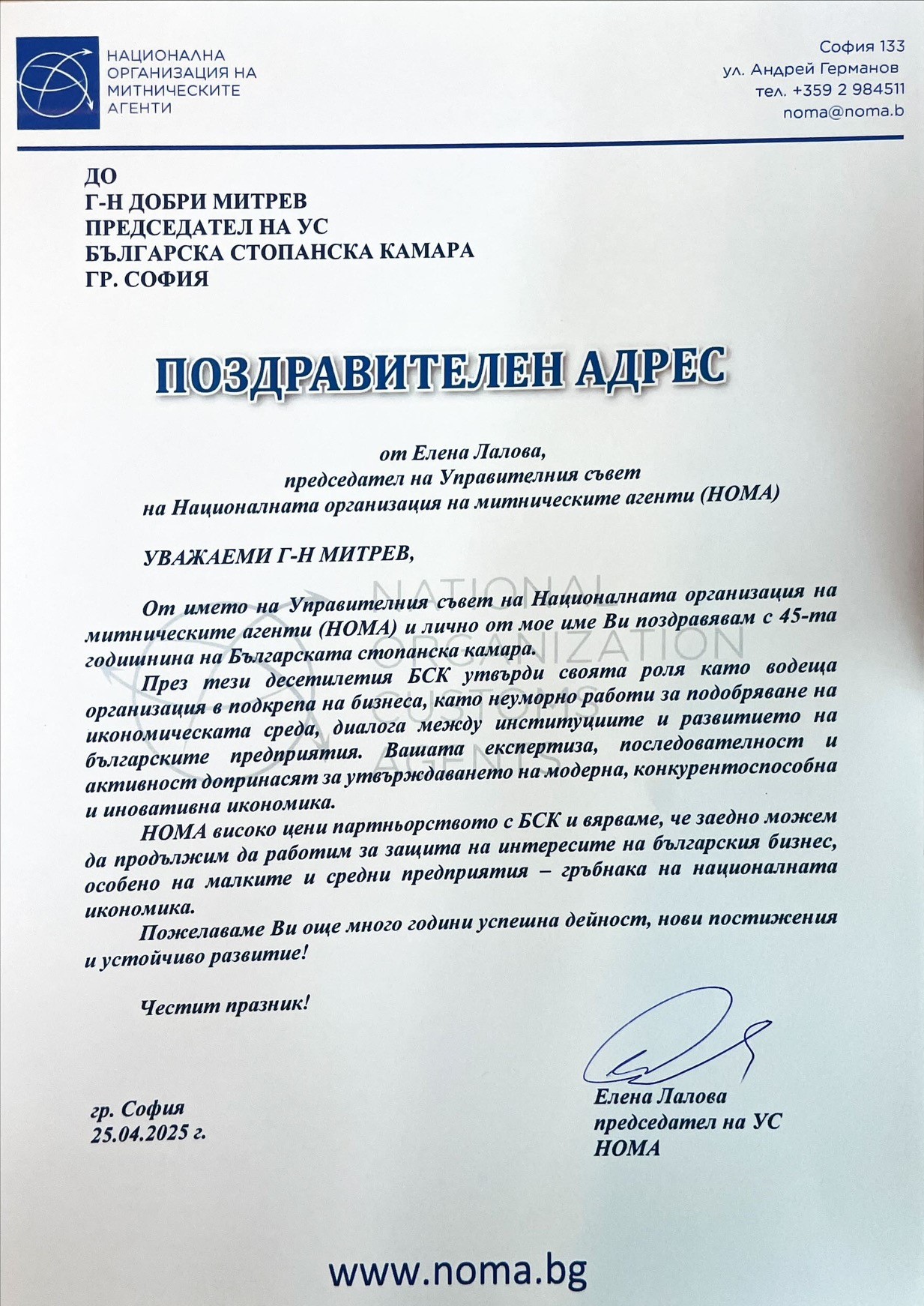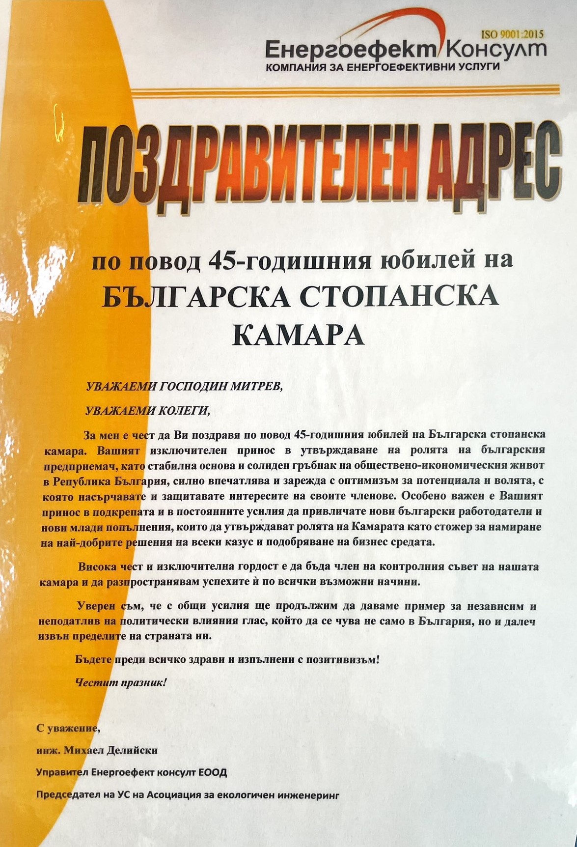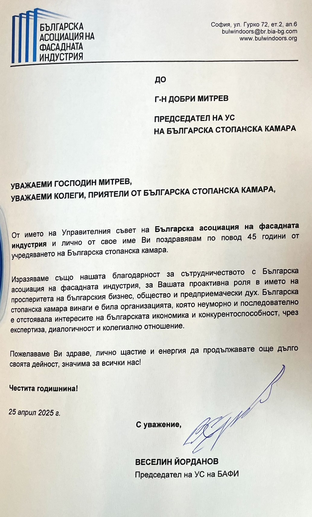 Поздравителни адреси: