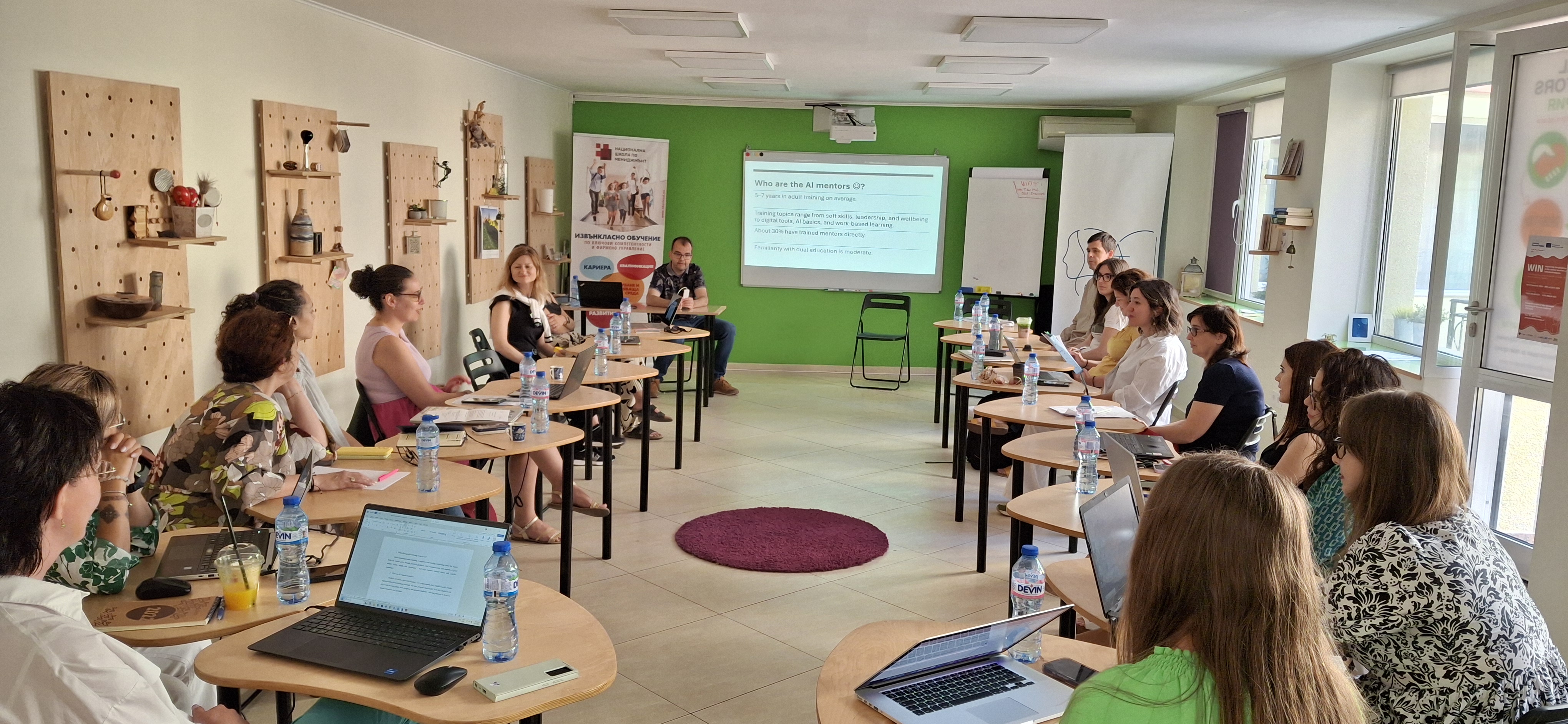 Българската стопанска камара, като координатор на проекта AI in Mentoring, и Фондация за модерно образование организираха обучение на обучители на 18–19 юни 2025 г. в София, България.
