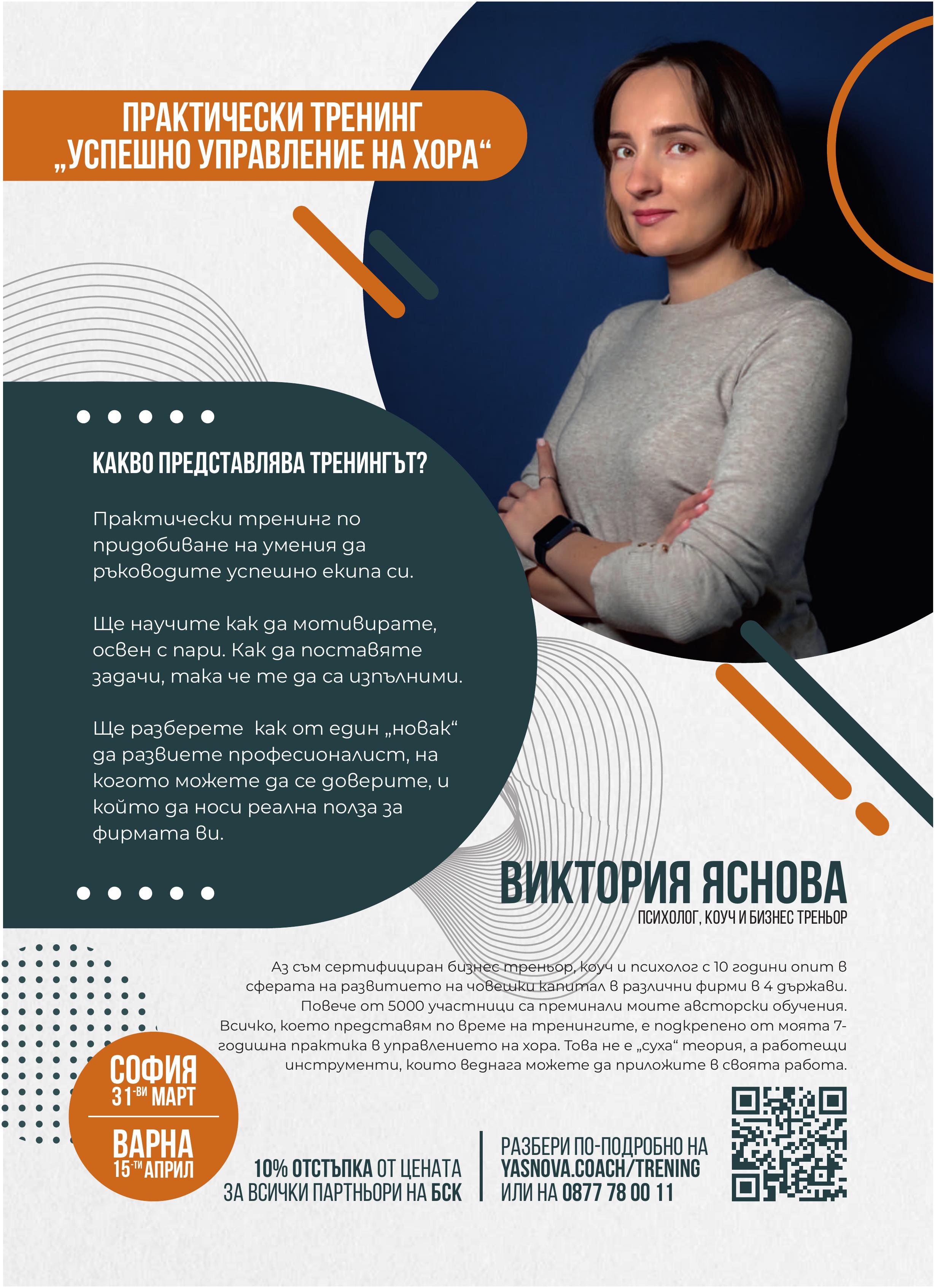 ПРАКТИЧЕСКИ ТРЕНИНГ "УСПЕШНО УПРАВЛЕНИЕ НА ХОРА" Прочетено: 145 Изпрати съобщение Име * E-mail * Въведете вашето мнение *