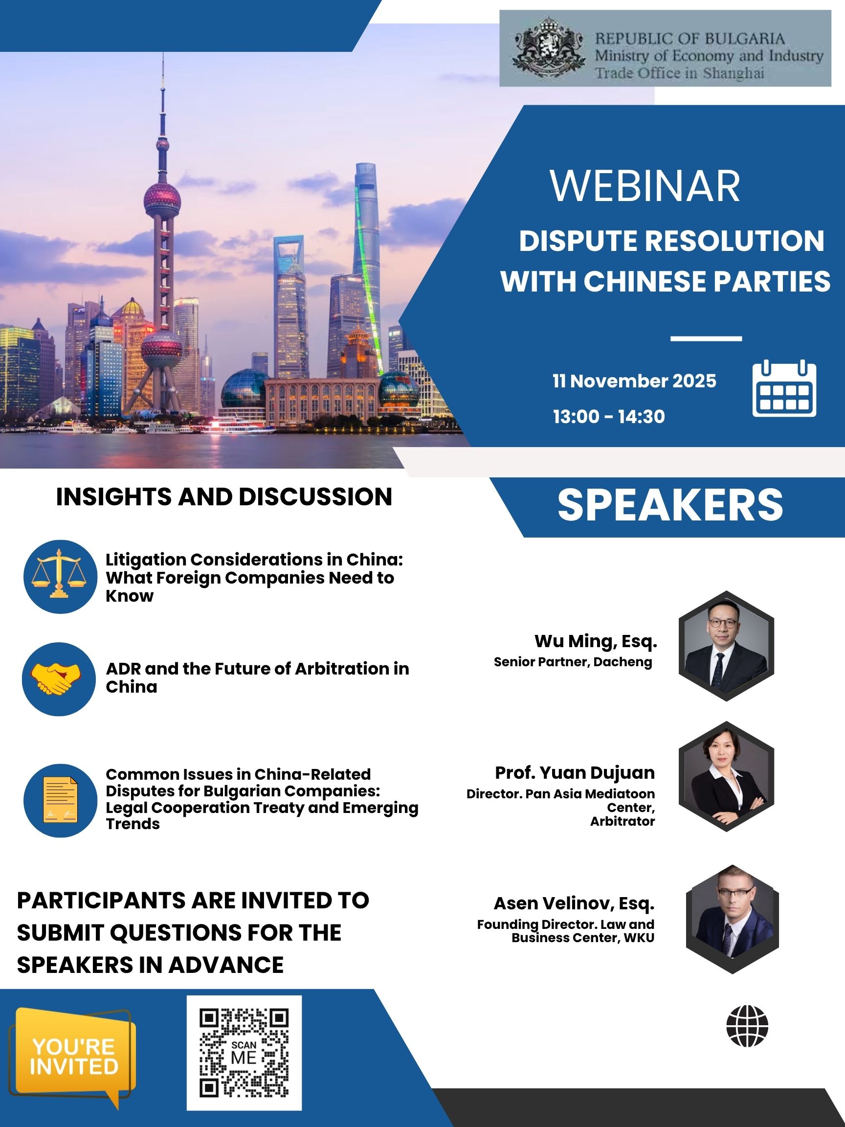 УЕБИНАР "СТРАТЕГИИ ЗА УСПЕШНО РАЗРЕШАВАНЕ НА СПОРОВЕ С КИТАЙСКИ КОНТРАГЕНТИ"