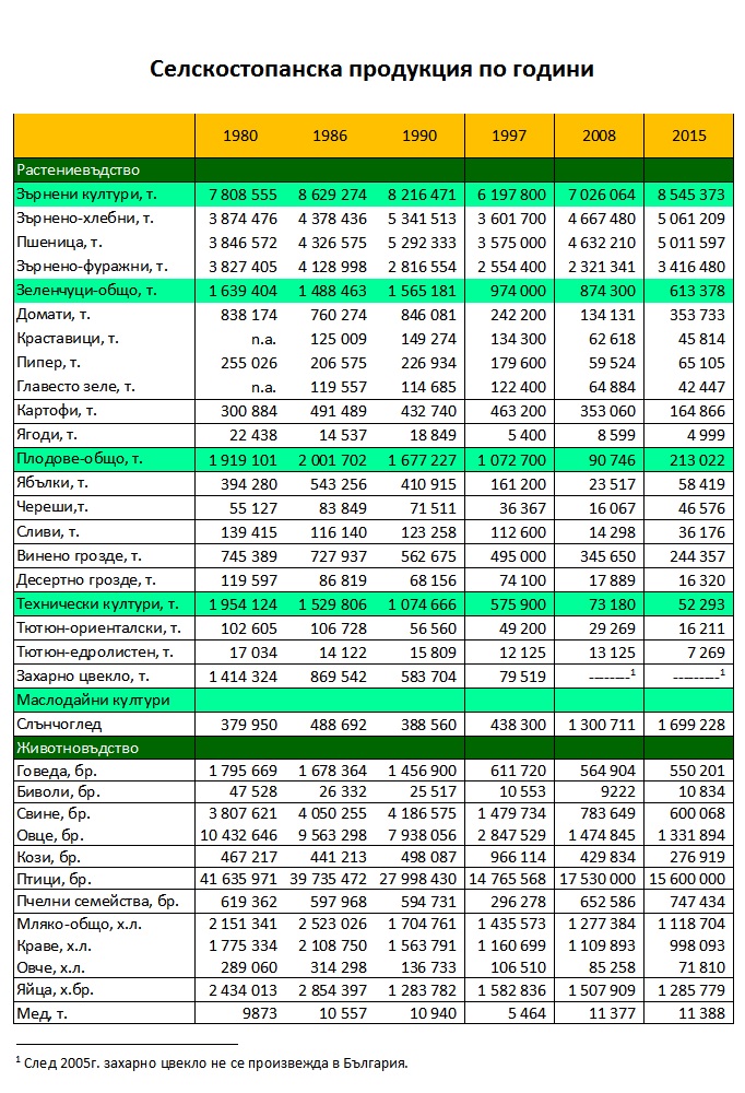 СЕЛСКО СТОПАНСТВО (1980-2015 Г.)