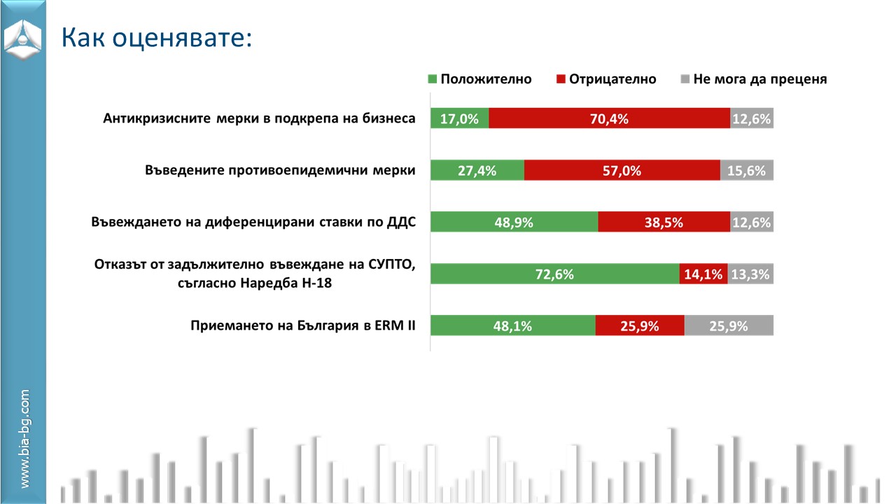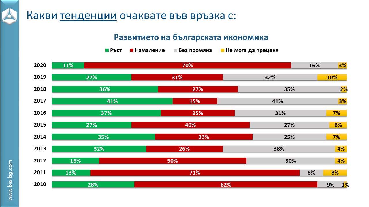 На 17 декември 2020 г., БСК представи резултатите от традиционното си онлайн-допитване до членовете на Камарата, проведено в периода 10 ноември – 10 декември 2020 г. сред 810 микро-, малки, средни и големи предприятия от цялата страна и от всички сектори на икономиката.