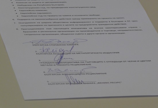 ПРЕСКОНФЕРЕНЦИЯ В БСК ЗА ПОДПИСВАНЕТО НА СПОРАЗУМЕНИЕ ОТНОСНО ПРОЕКТ НА ЗАКОН ЗА УПРАВЛЕНИЕ НА ОТПАД