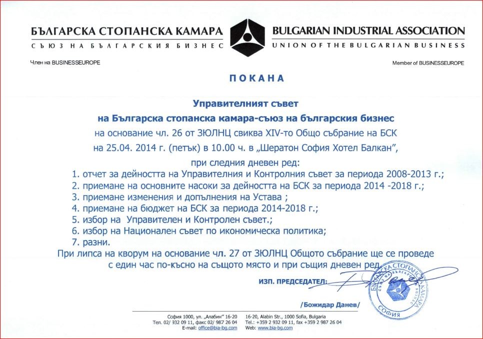 XIV ОБЩО СЪБРАНИЕ НА БСК