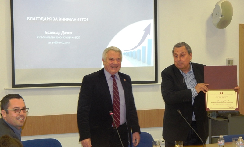 На 9 май 2016 г. Божидар Данев, изпълнителният председател на Българска стопанска камара, изнеса публична лекция пред студенти в Университета за национално и световно стопанство (УНСС).