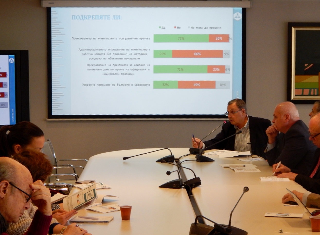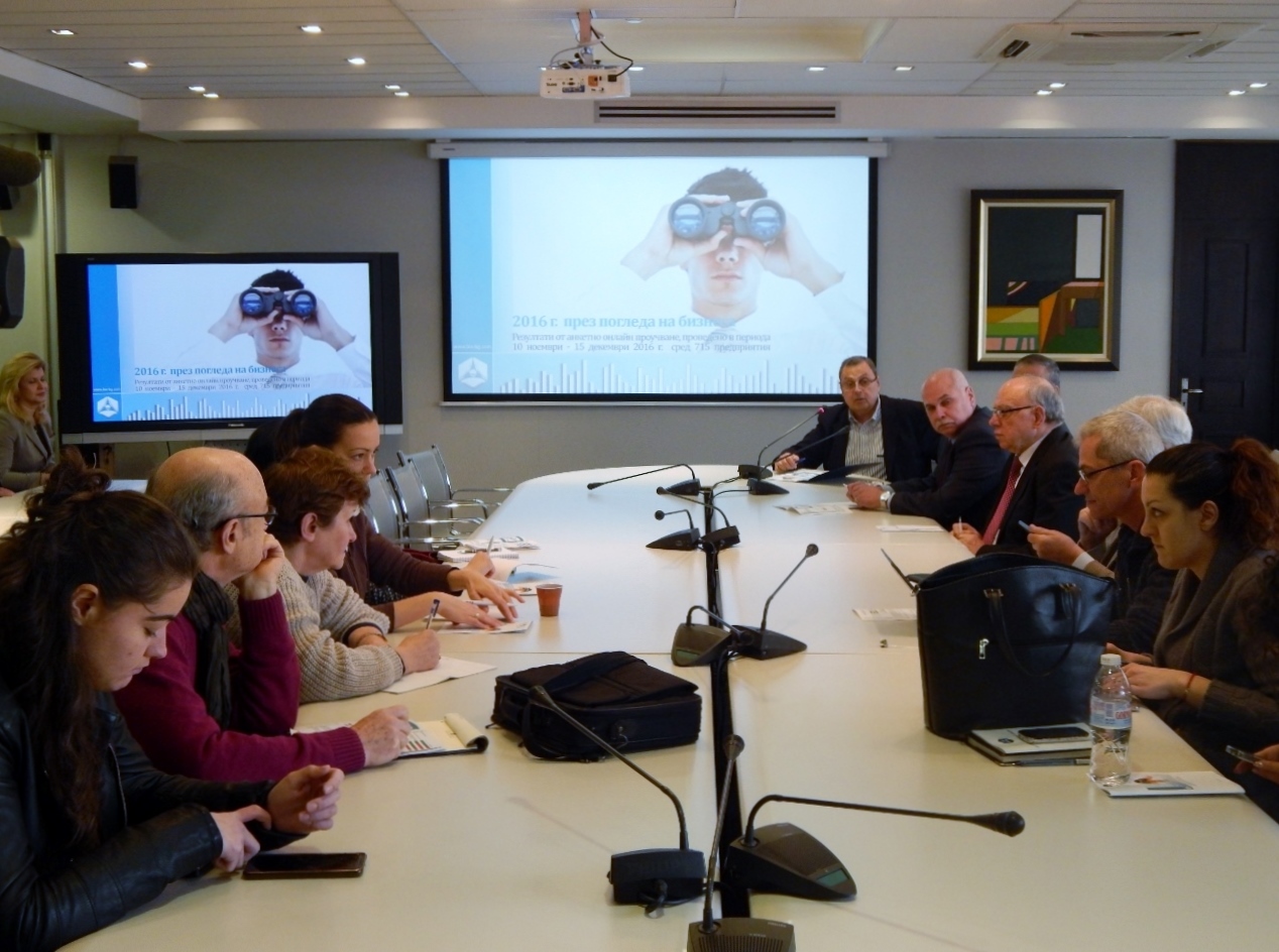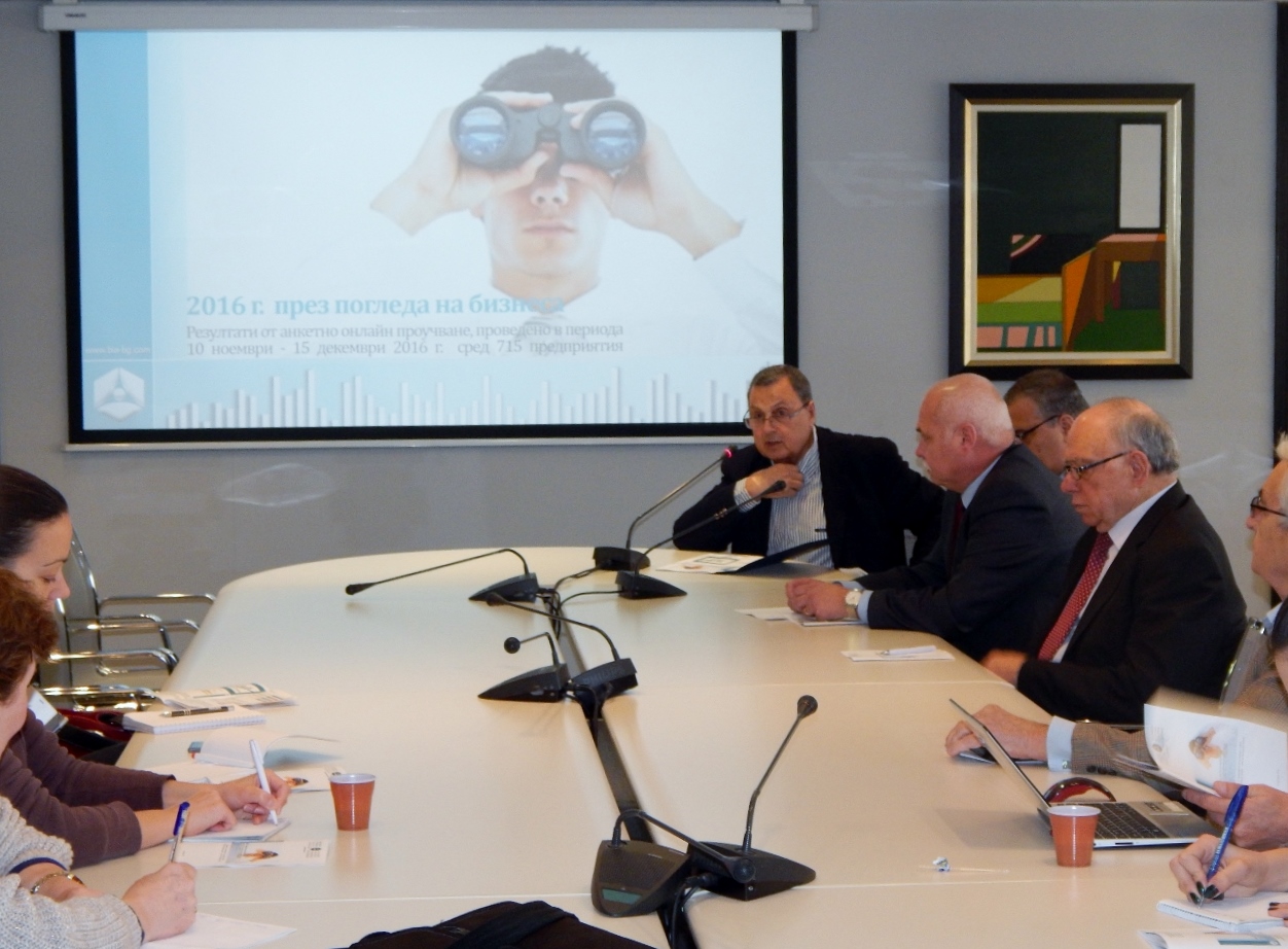 Проучването отчита и умерен оптимизъм за 2017 г., който обаче в голяма степен се помрачава от неудовлетвореност към работата на институциите, притеснения за ръст на цени, данъчна и регулаторна тежест.