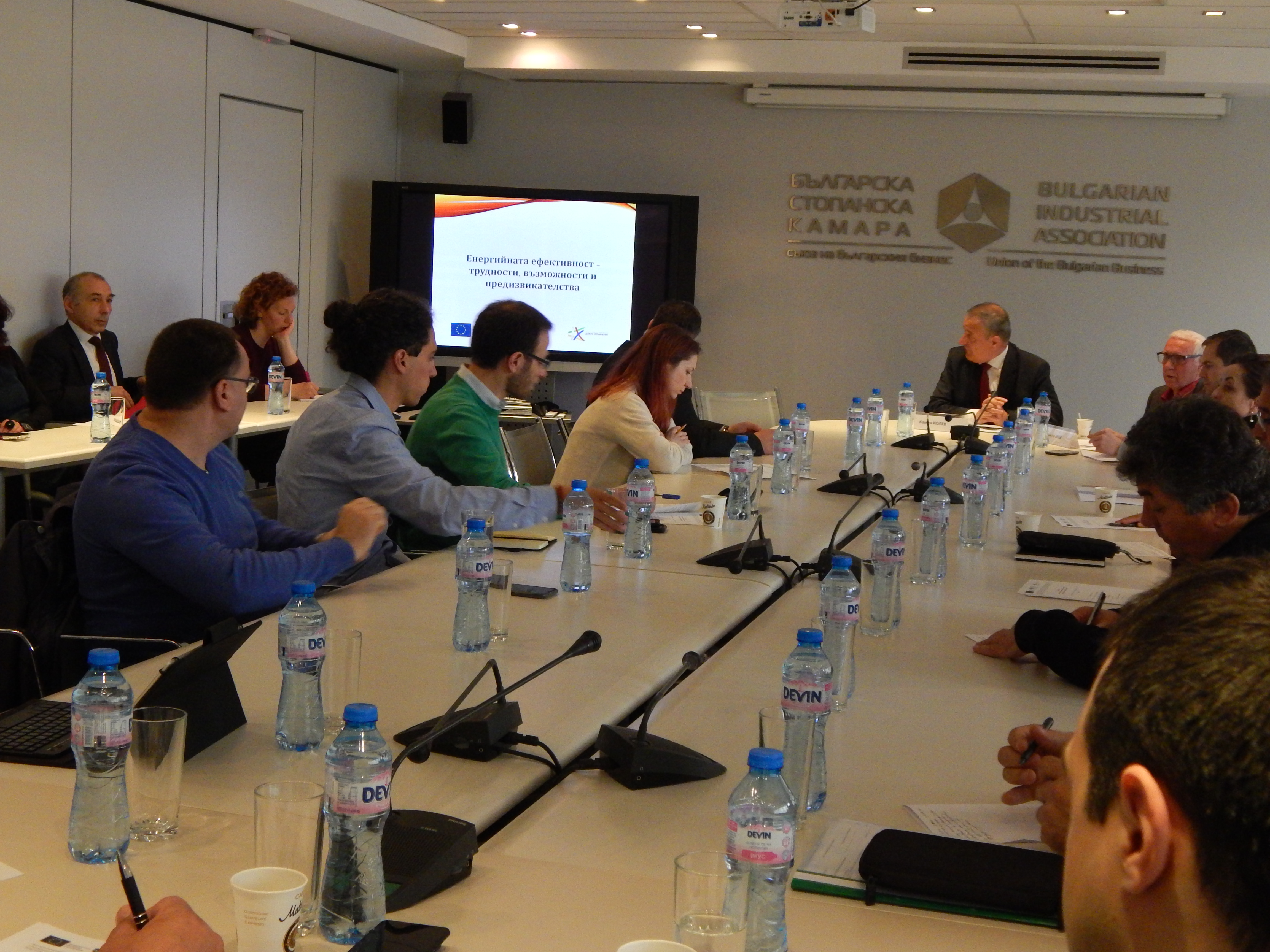 Българската стопанска камара съвместно със Софийската енергийна агенция "СОФЕНА" проведоха работна дискусия на тема "Енергийната ефективност - трудности, възможности и предизвикателства" при изпълнение на задълженията на търговците на енергия и възможностите за осъществяване на проекти (съвместни дейности) с доставчици на оборудване.