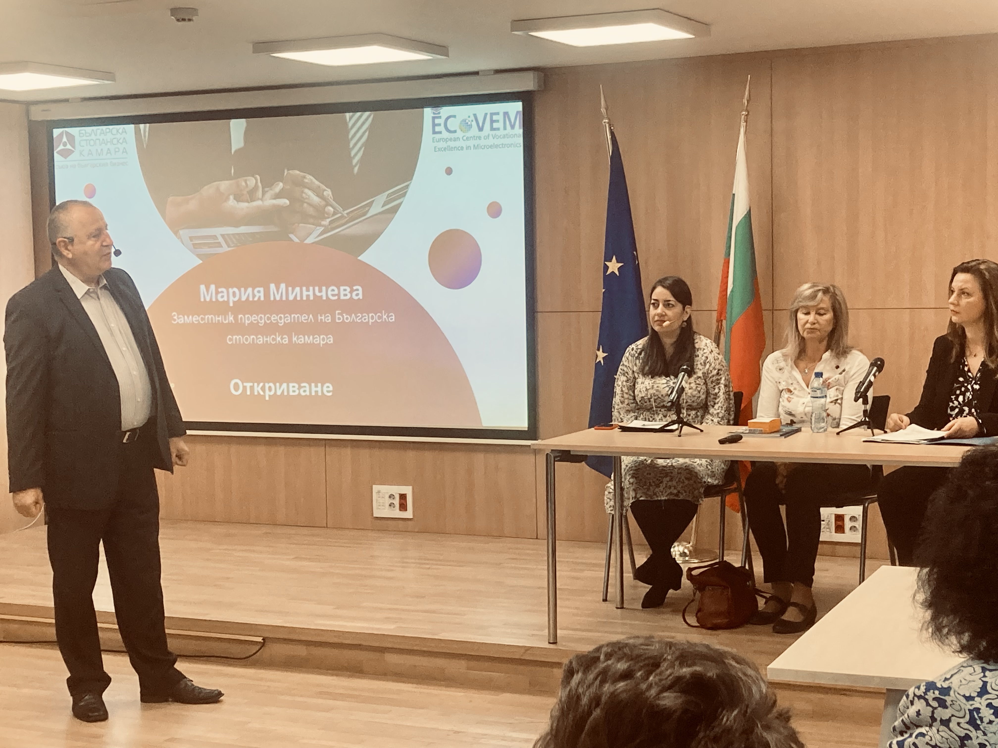 Събитието се проведе като част от проекта ECoVEM, финансиран от програма "Еразъм+" и изпълняван от 21 партньори от 7 държави, сред които и Българската стопанска камара. Проектът ECoVEM обединява центрове за професионално образование и обучение (ПОО), технически университети, индустриални асоциации, социални партньори за създаване на европейска платформа за сътрудничество между професионални постижения в микроелектрониката с цел справяне с предизвикателствата на дигитализацията, изкуствения интелект, зелените технологии, равенството между половете в технологиите, интеграцията на мигрантите.