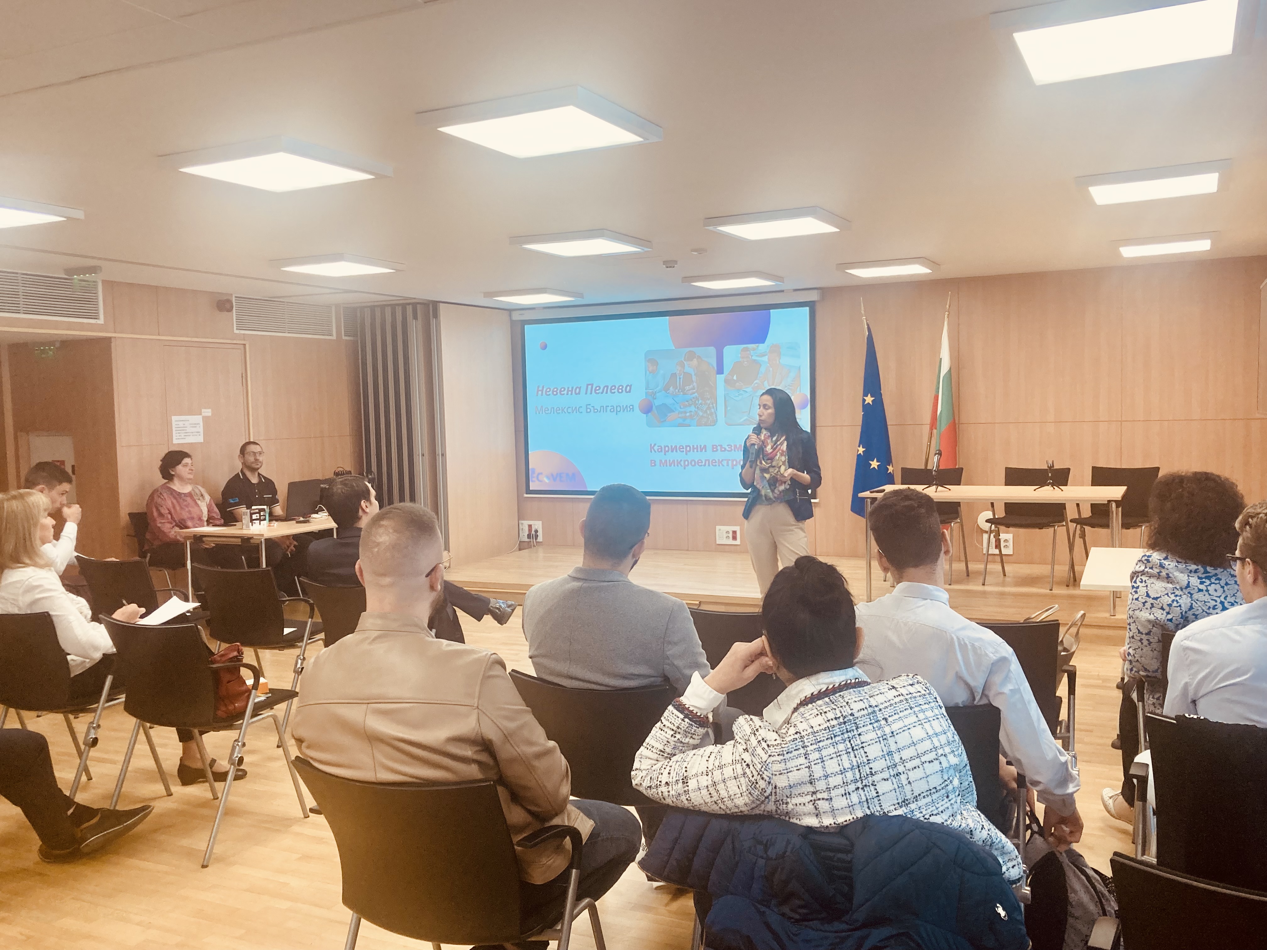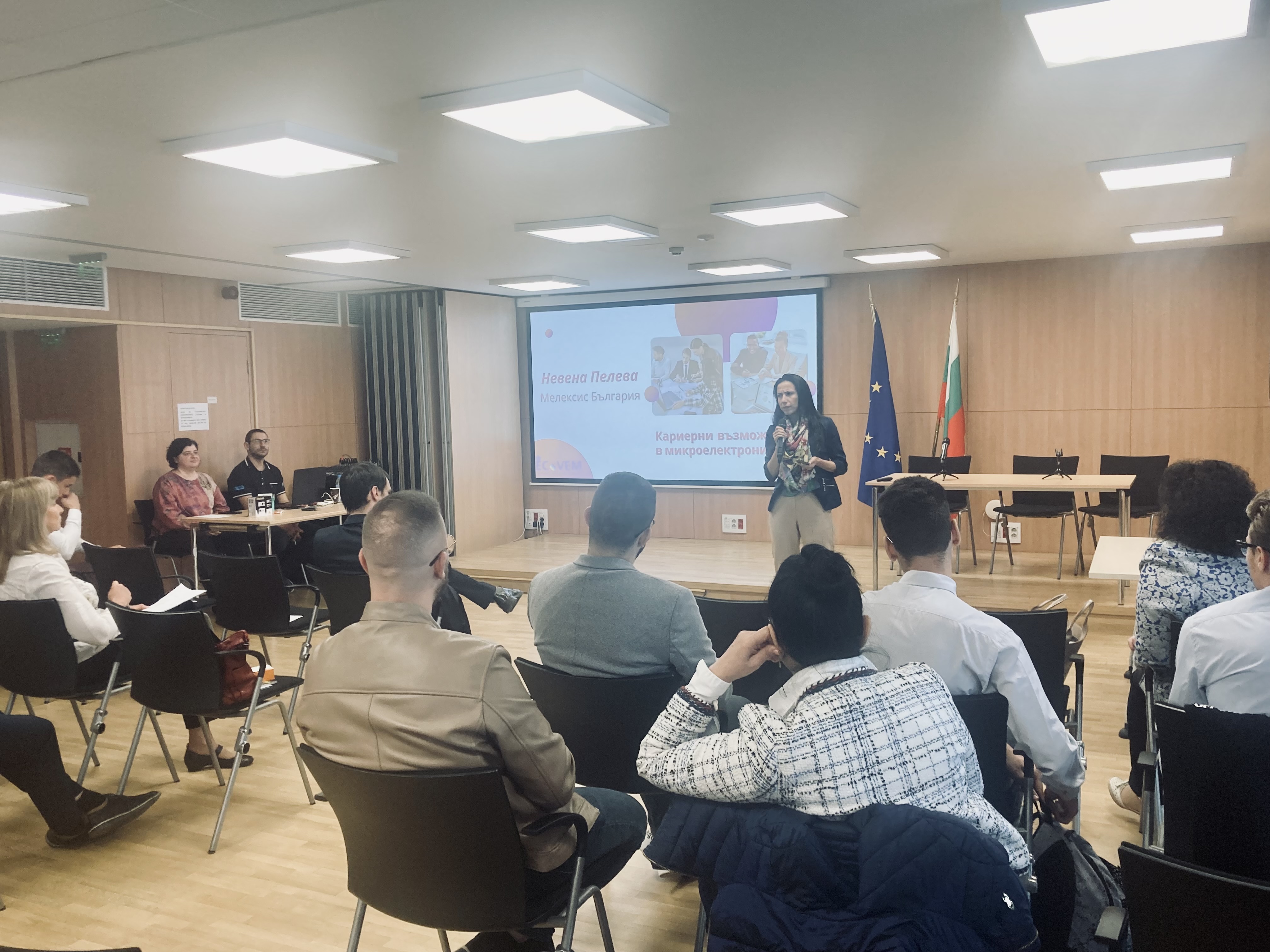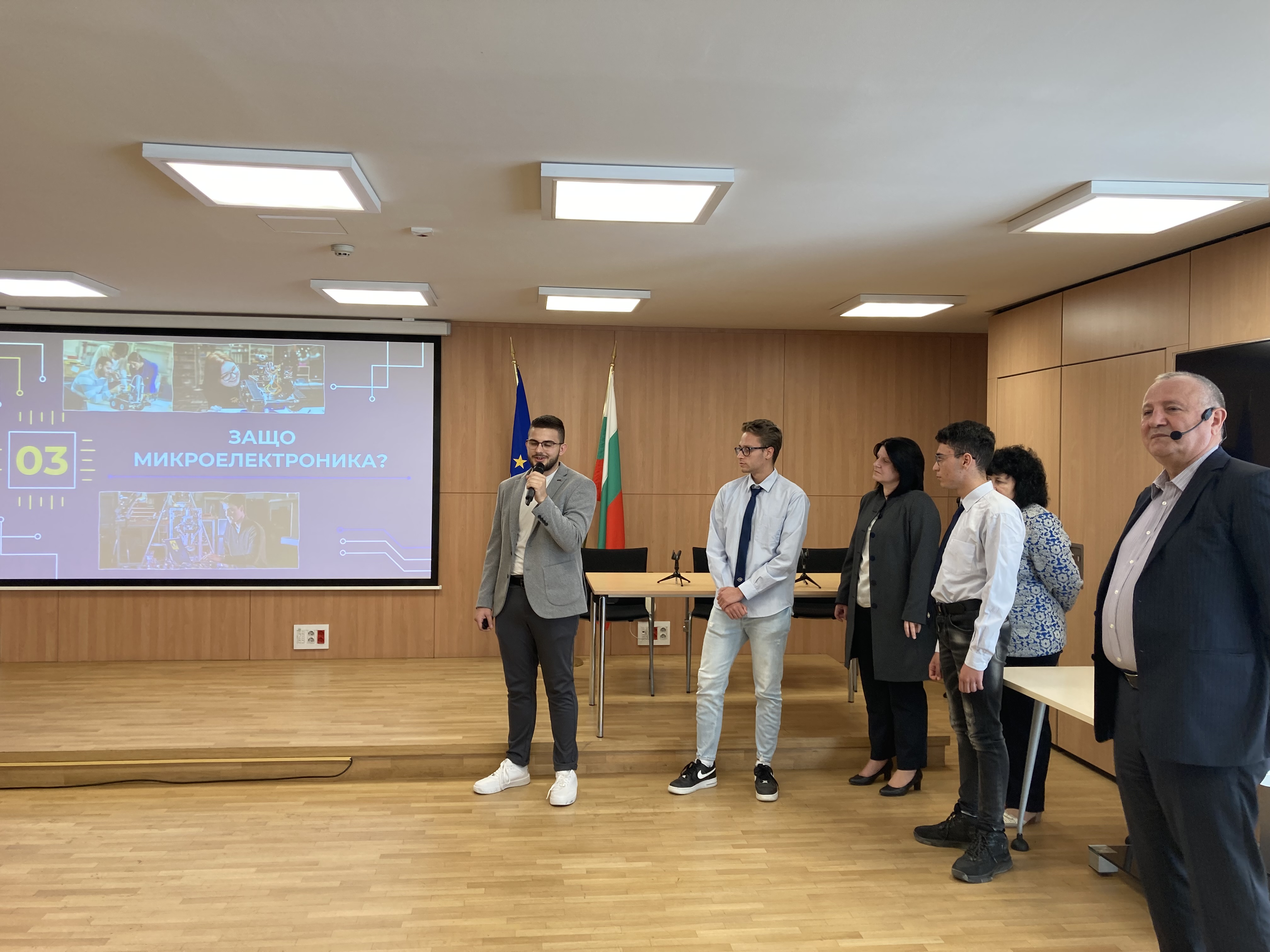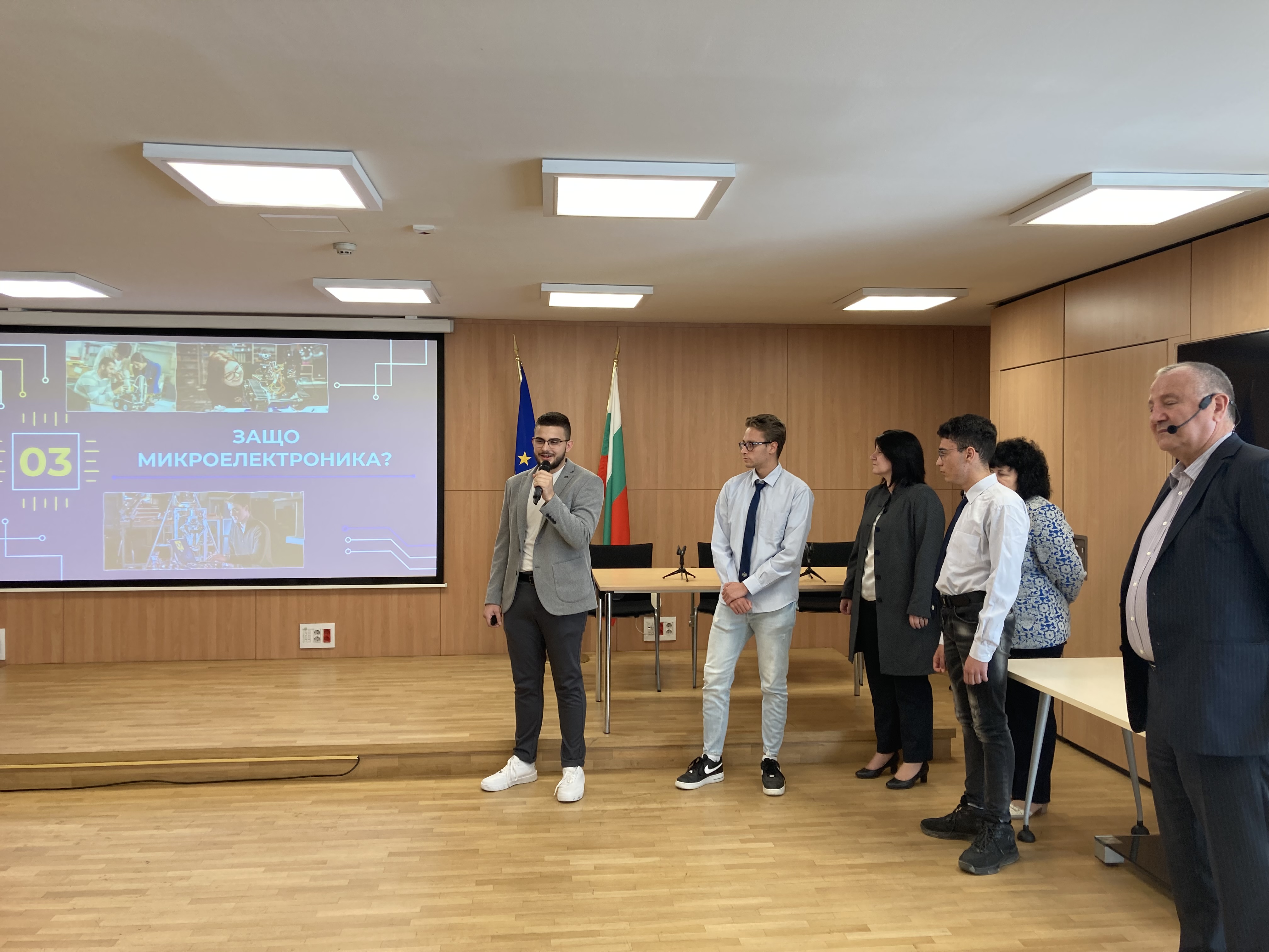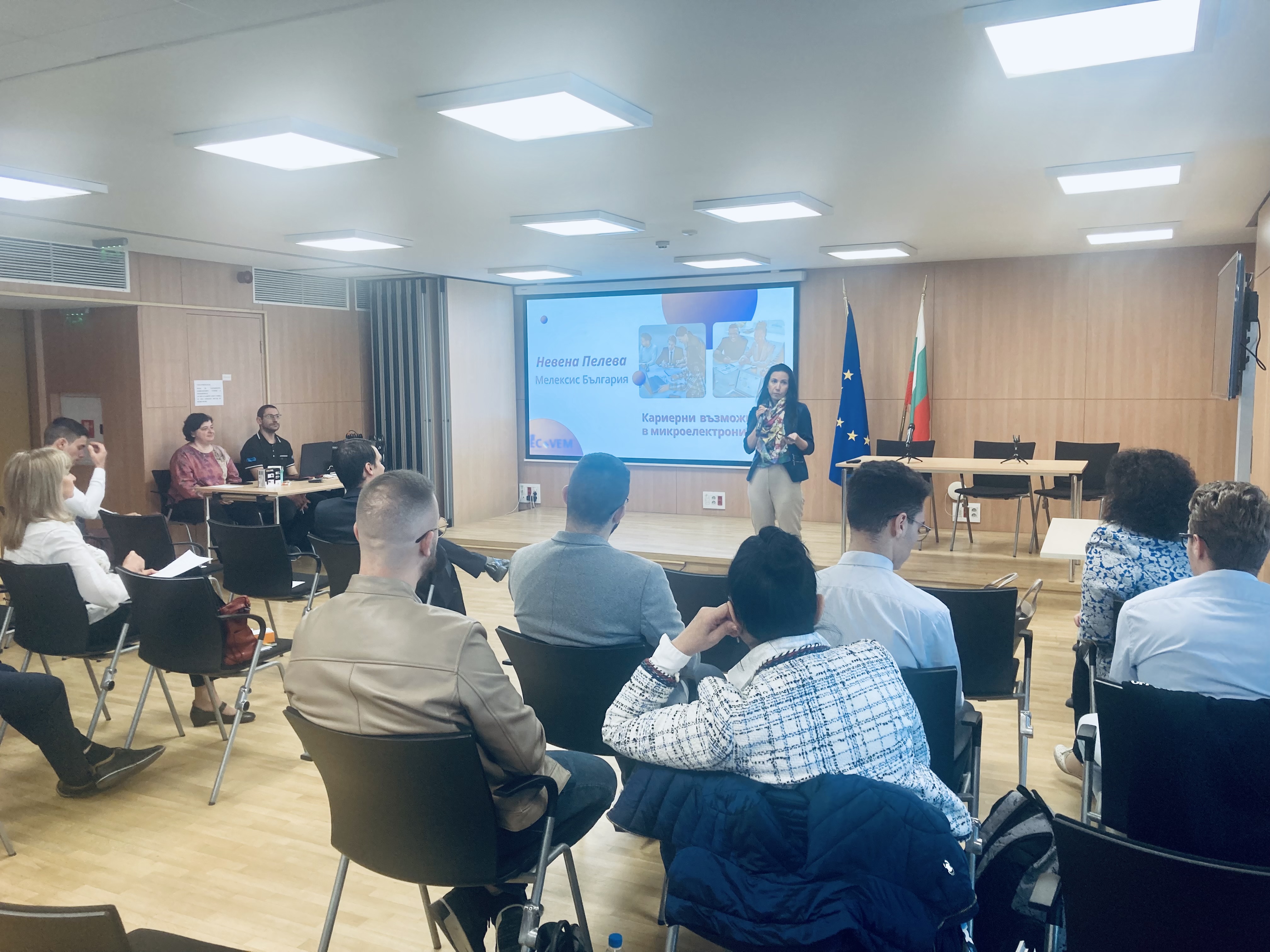 Кариерни възможности в сферата на микроелектрониката представиха Йонко Чуклев от Професионалната асоциация по роботика и автоматизация, Невена Пелева от "Мелексис България", Галина Ставрева и Владимир Ставров от "АМГ Технолоджи", както и Никол Георгиева от "ЛЕМ".